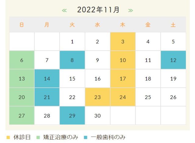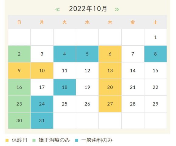 10月の休診日について(矯正歯科)