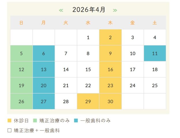 4月の休診日について(矯正歯科)